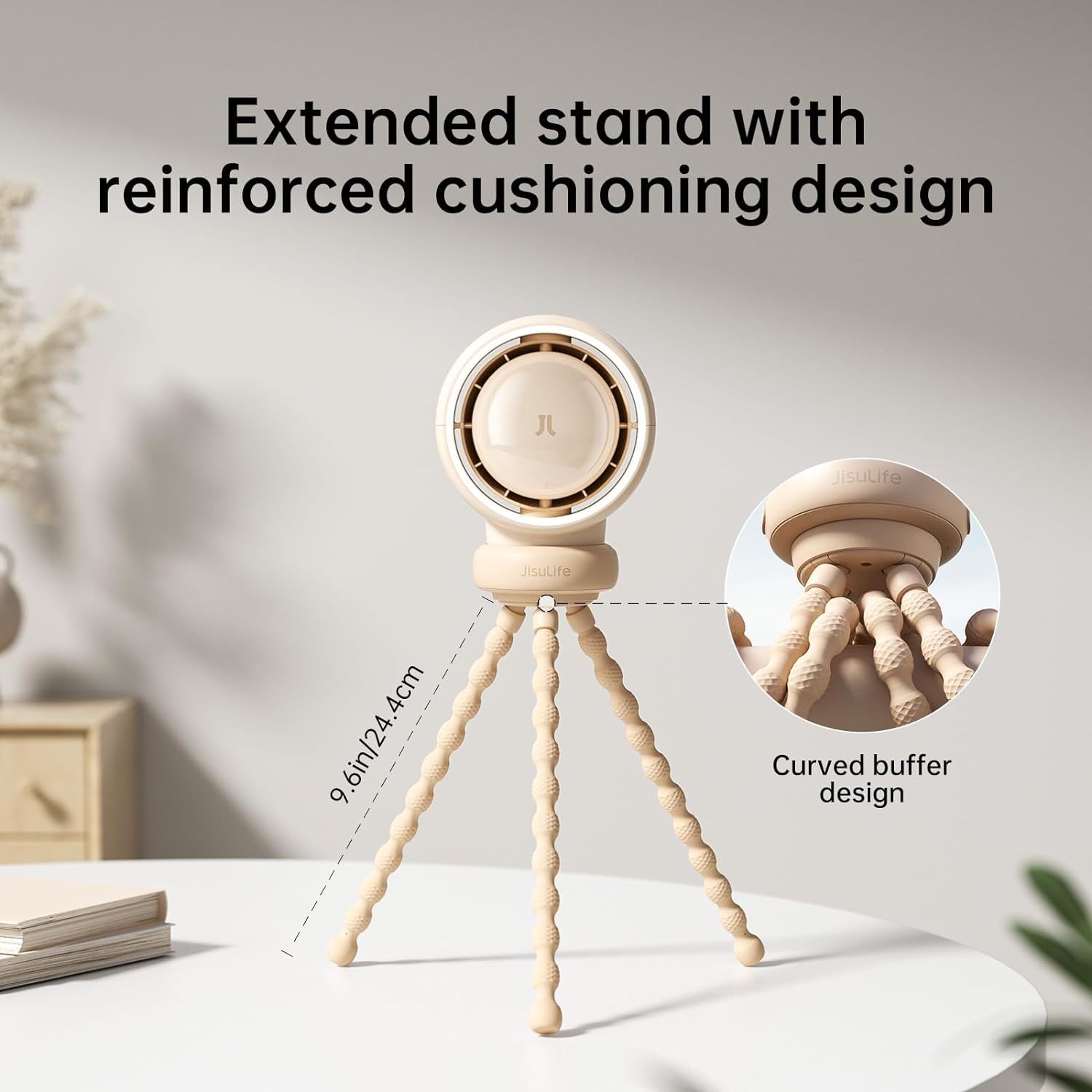 ?Baby Stroller Fan?Bladeless turbine design, safe and will not hurt your baby. The tripod uses food-grade TPU silicone, which is safer more durable, flexible than other tripod stroller fans. It is an ideal choice to provide coolness for the baby in summer. ?Air Purifying Fan?JISULIFE newest stroller fan not only provides a cool breeze, but is also equipped with an advanced filtration system. It can effectively capture dust and particles in the air, allowing your baby to rest and play in a fresher environment. ?Nature Wind Air Turbo Tech?This portable desk fan can simulate the comfort of natural wind, making the baby feel more comfortable. The air multiplication technology can provide greater air volume to ensure that the baby can enjoy coolness in any environment. ?Food-Grade Silicone Bracket?BPA-free stroller fan is more suitable for babies. And is much safer than other fan. 75mm reinforced and extended silicone bracket provides more friction area and increases firmness. At the same time, a reinforced design is made to make the structure more durable. ?Soft Ring Light?There is an intuitive control switch on the top of the product, which can easily switch between different brightness levels. Whether home, office or public place, the three-speed lighting can provide a suitable lighting solution to adapt to various occasions.
