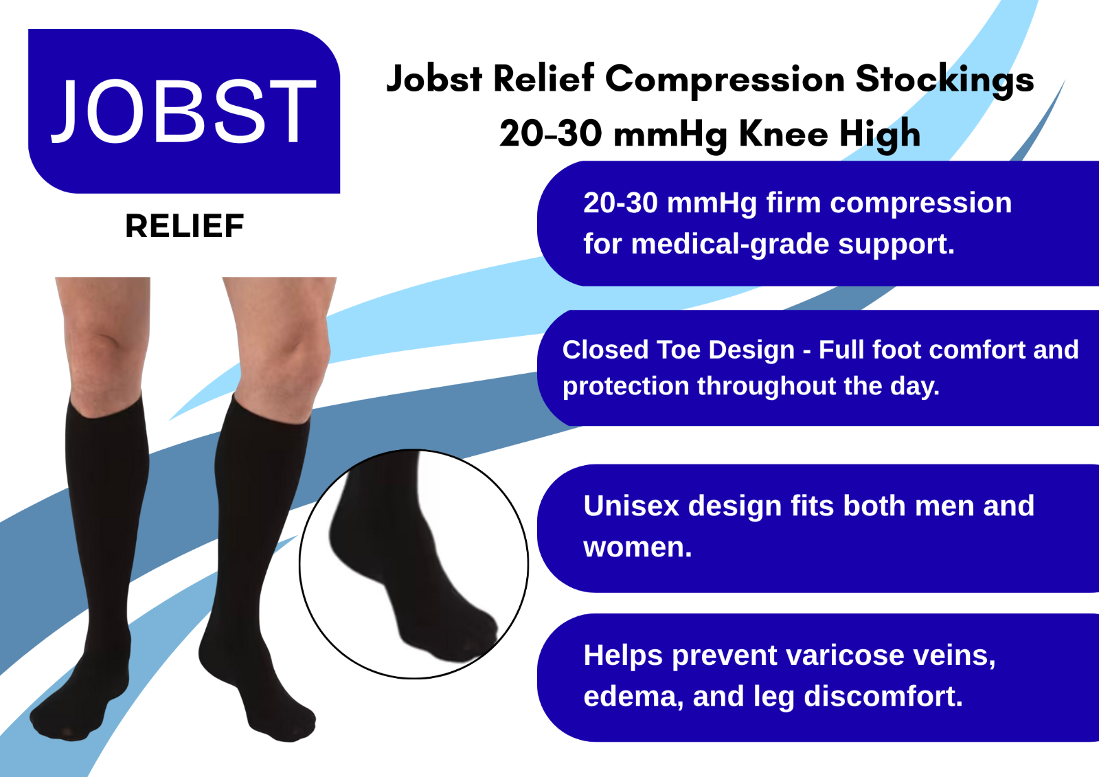 Jobst Relief 20-30 mmHg Knee High Compression Stockings are your daily solution for swelling, discomfort,