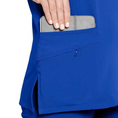 Elevate your comfort when youre busy making rounds with the classic style of our Jockey Womens V-Neck Crossover Scrub Top. The flattering V-neckline and soft, lightweight fabric are sure to make this your go-to top. Vents along the side seam hem provide ease of movement, plus the signature zippered pocket at the front keeps your valuables secure.