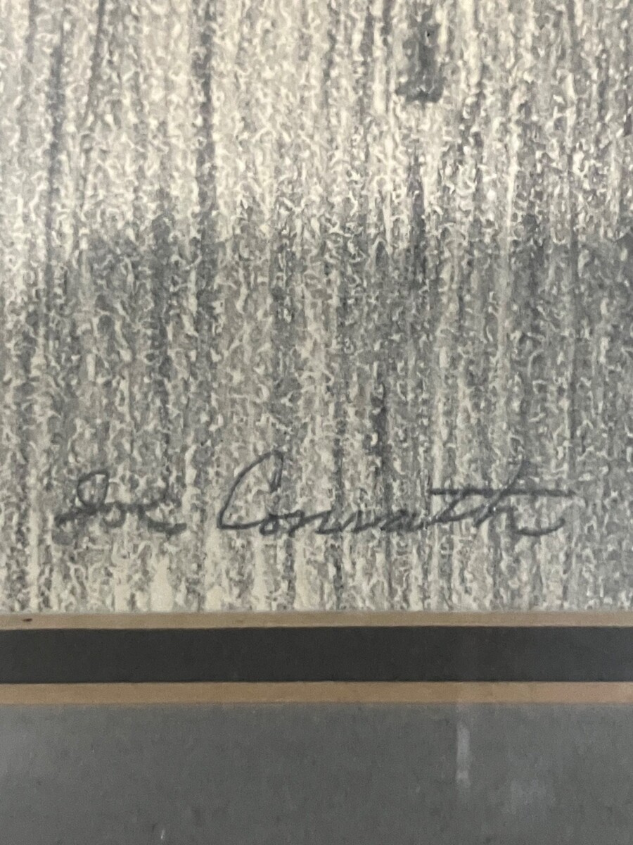 Joe Conrath charcoal sketch of a seagull on paper; signed bottom middle; frame measures 15 x 12.7"