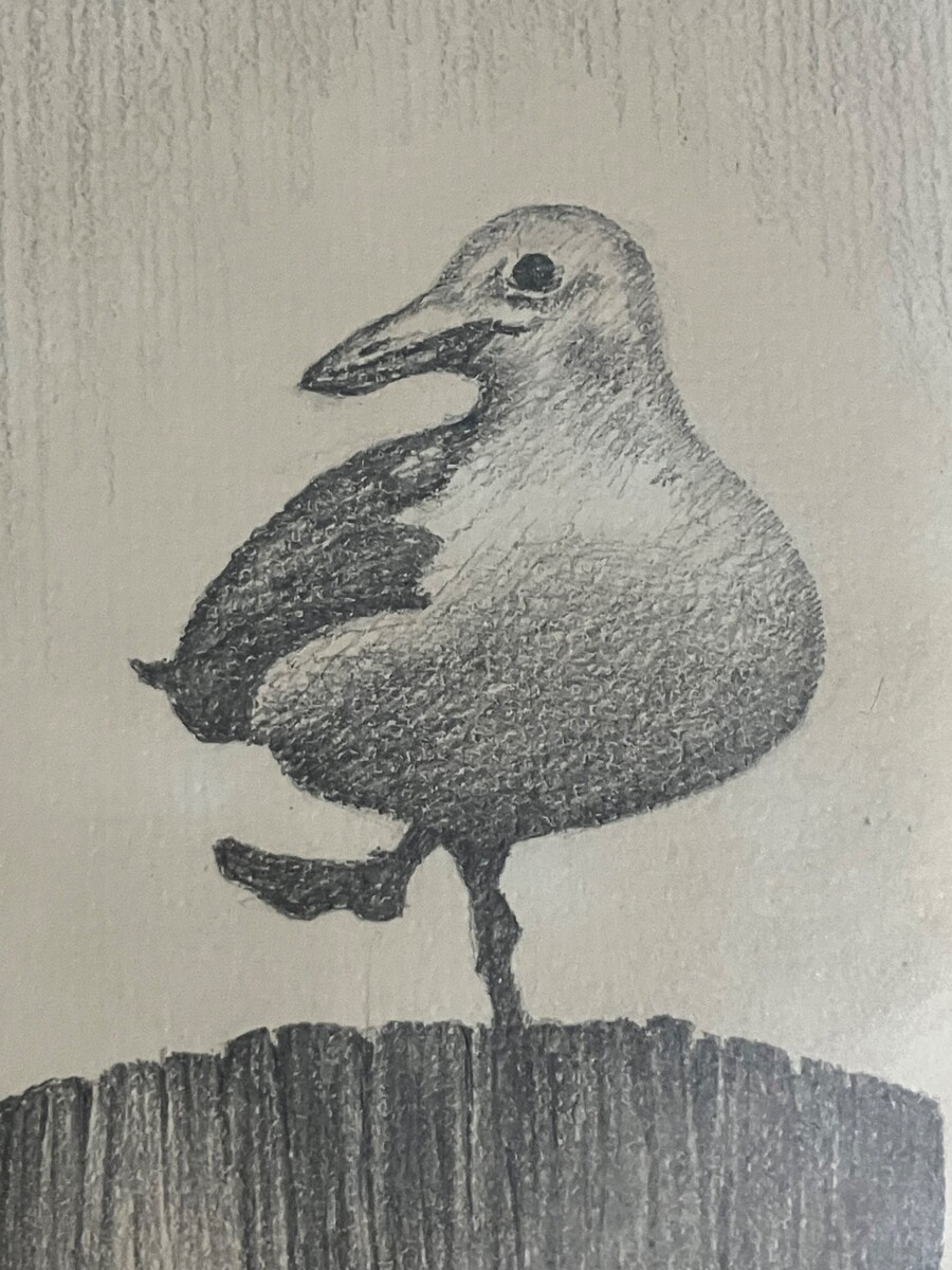 - Joe Conrath Charcoal Sketch on Paper of a Seagull Signed Bottom Middle