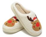 Festive Design: These cozy slippers feature an adorable reindeer design with antlers, a red nose, and embroidered details, perfect for getting into the Christmas spirit.