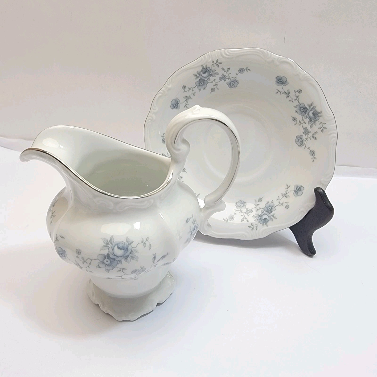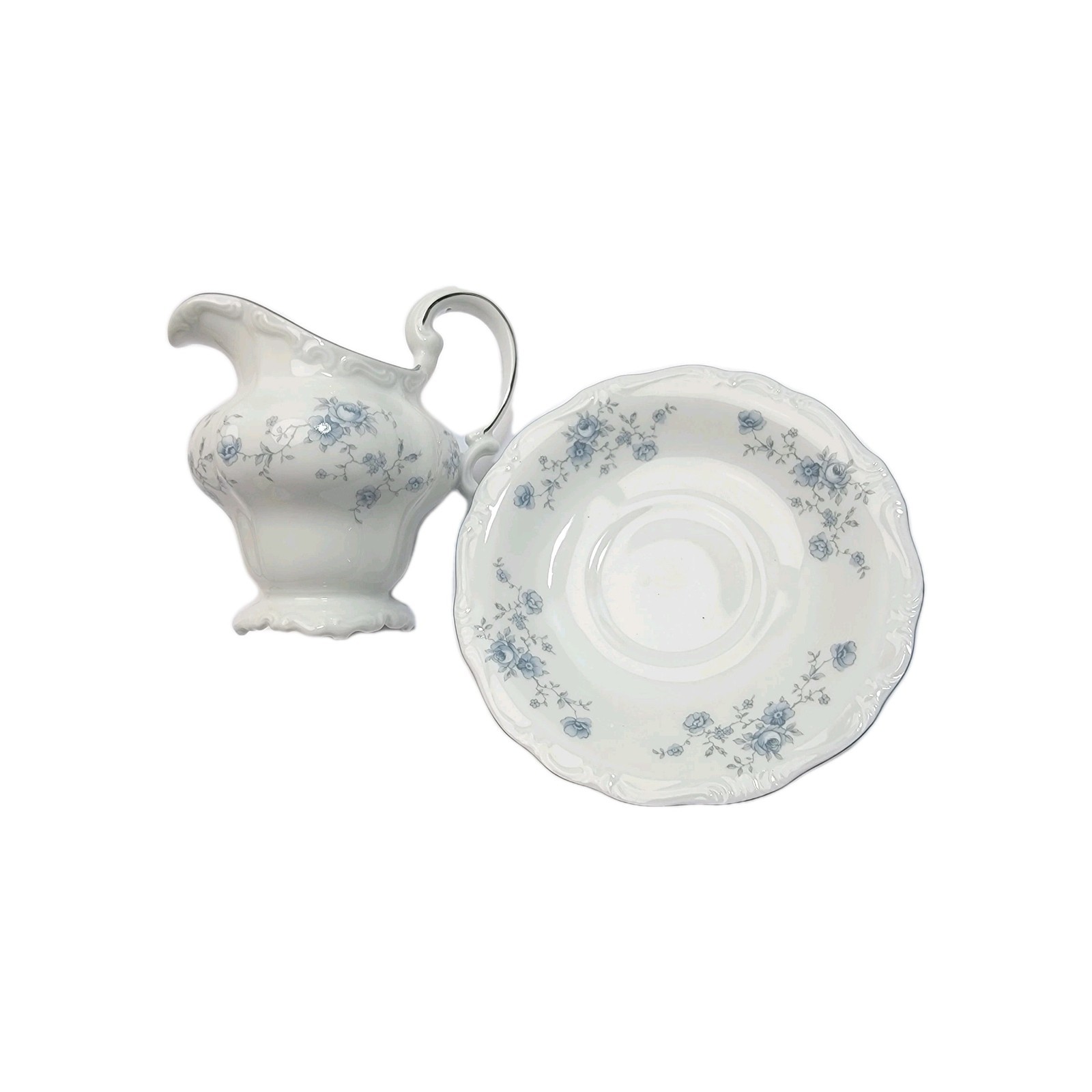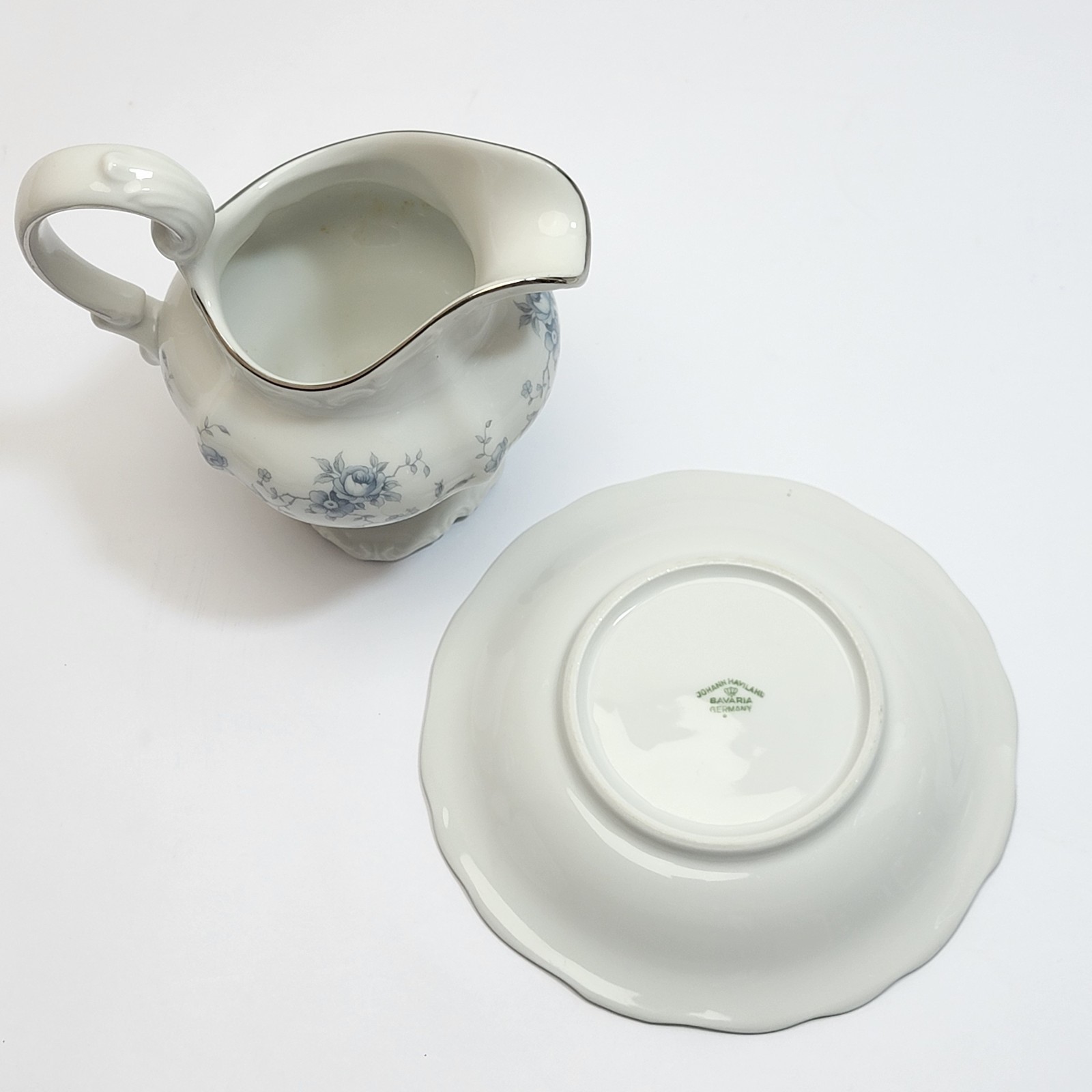 - Johann Haviland Bavaria Germany Blue Garland CREAMER Platinum Saucer Vintage