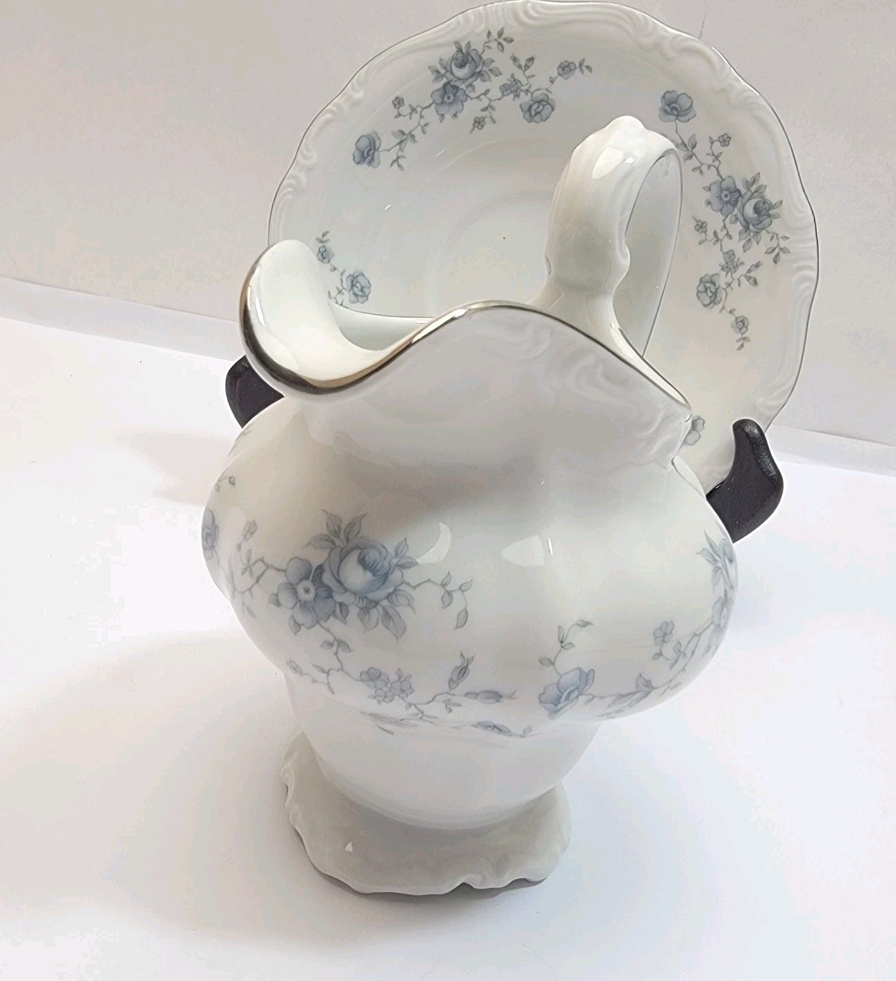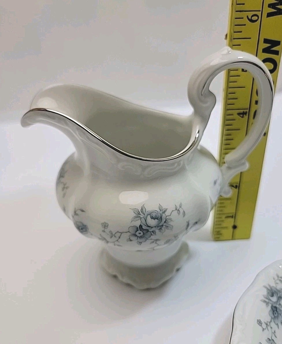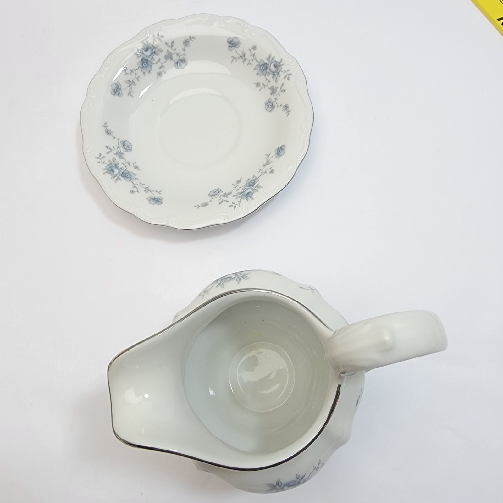 - Johann Haviland Bavaria Germany Blue Garland CREAMER Platinum Saucer Vintage