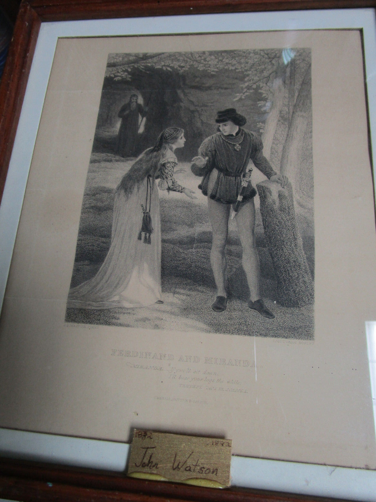 - John Dawson WATSON (Attrib.) (1832-1892) FERDINAND & MIRANDA STIPPLE ENGRAVING