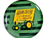 John Deere salad or dessert dinner plate featuring the green tractor with the text "JOHN DEERE Equipment since 1837, Moline, Illinois". Great farming or agriculture decor.