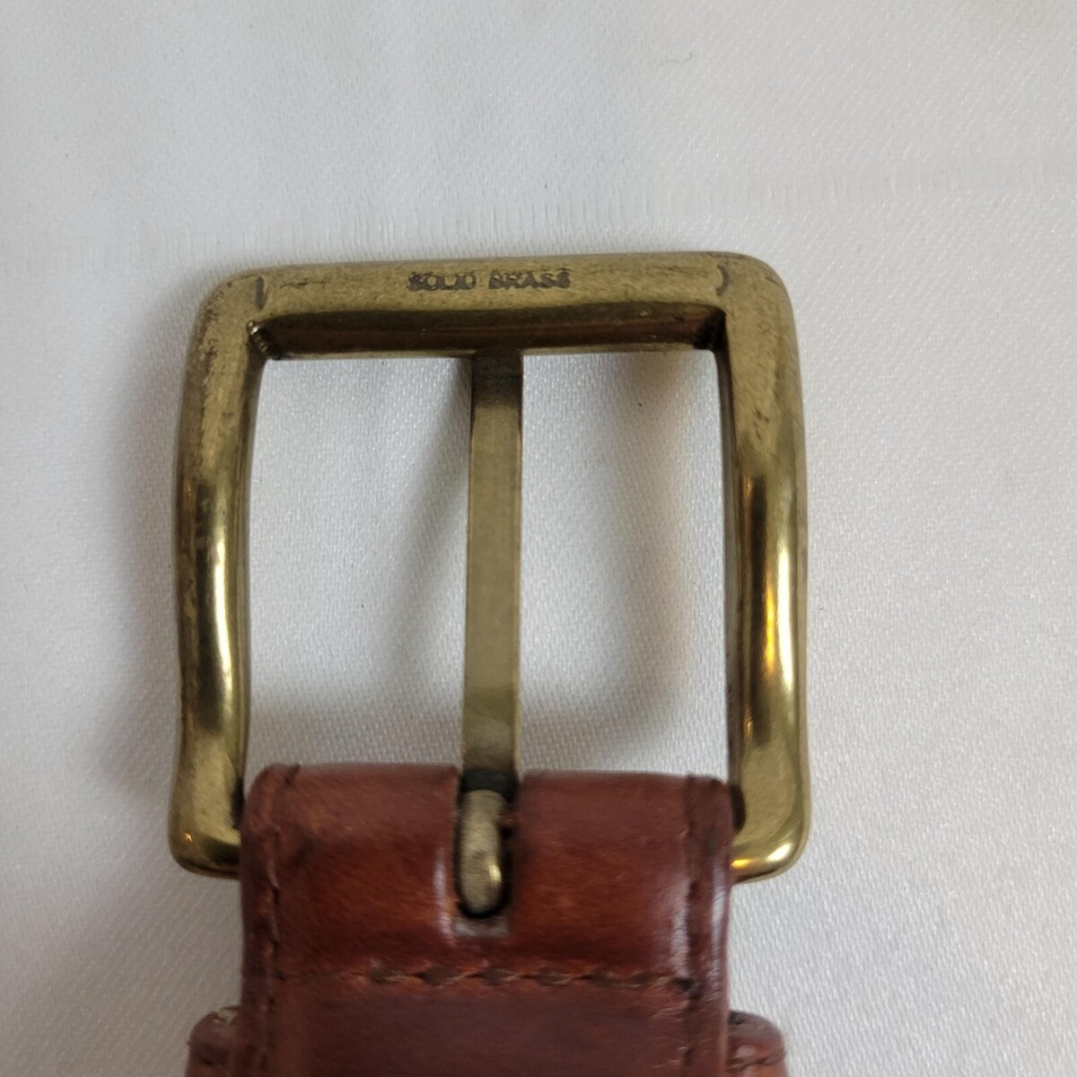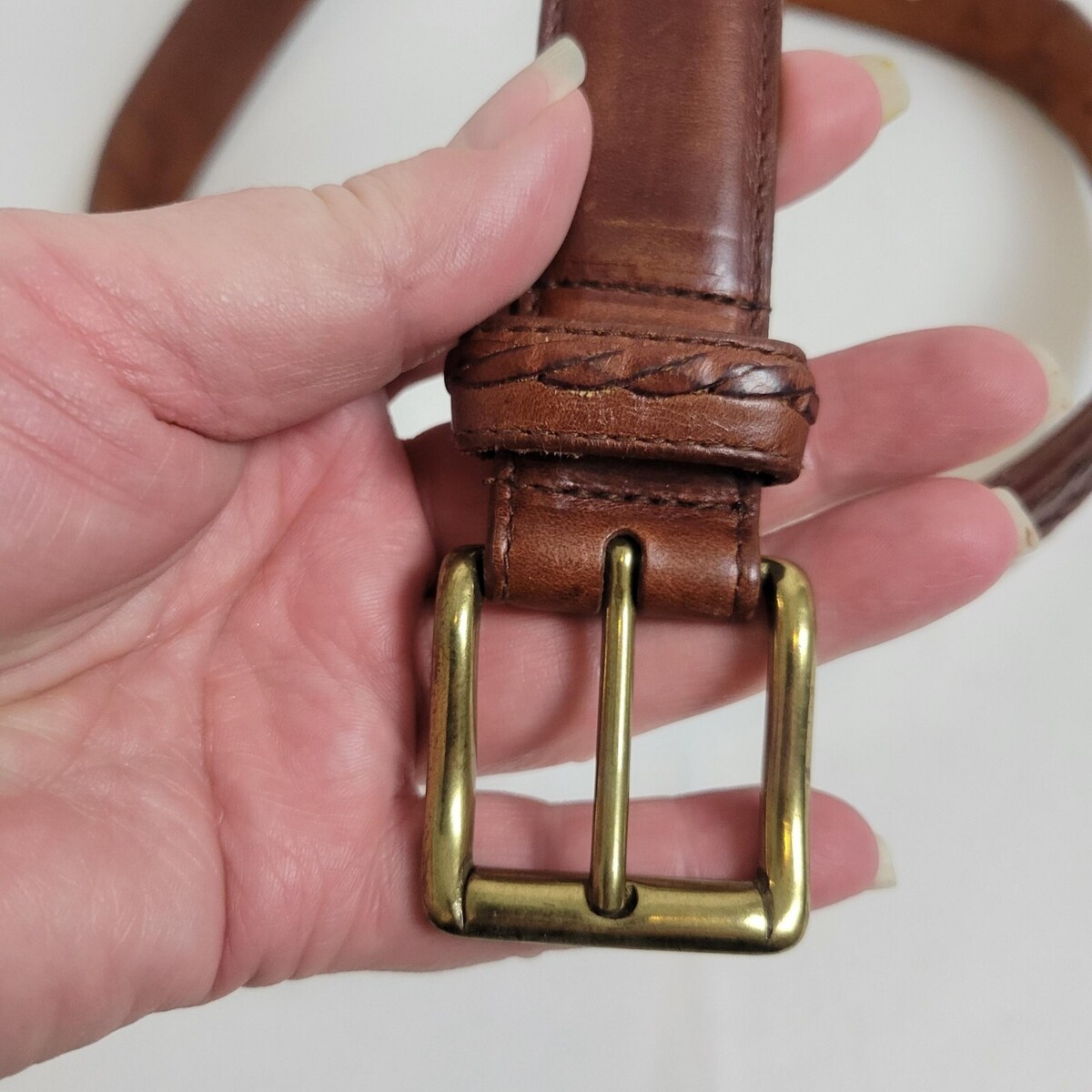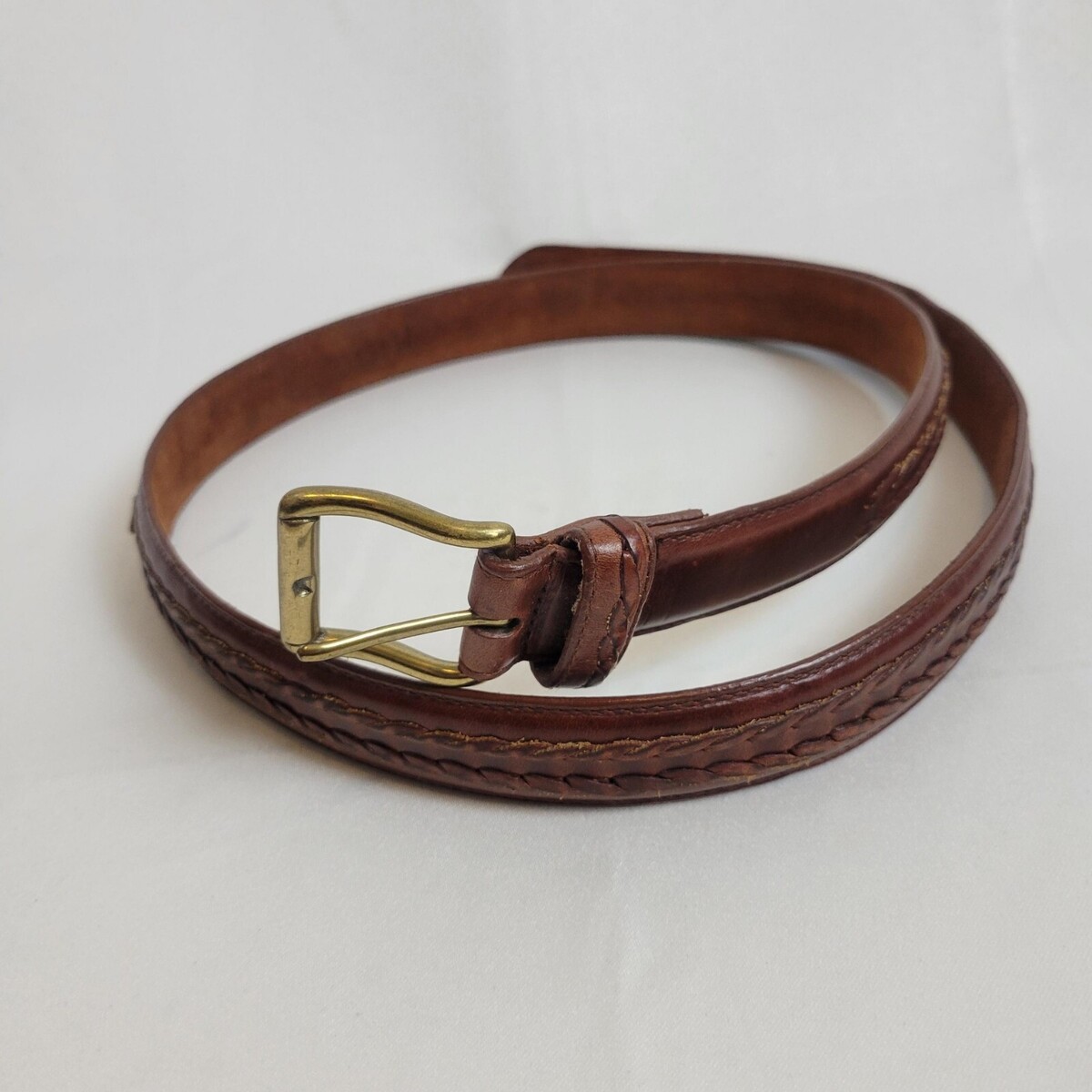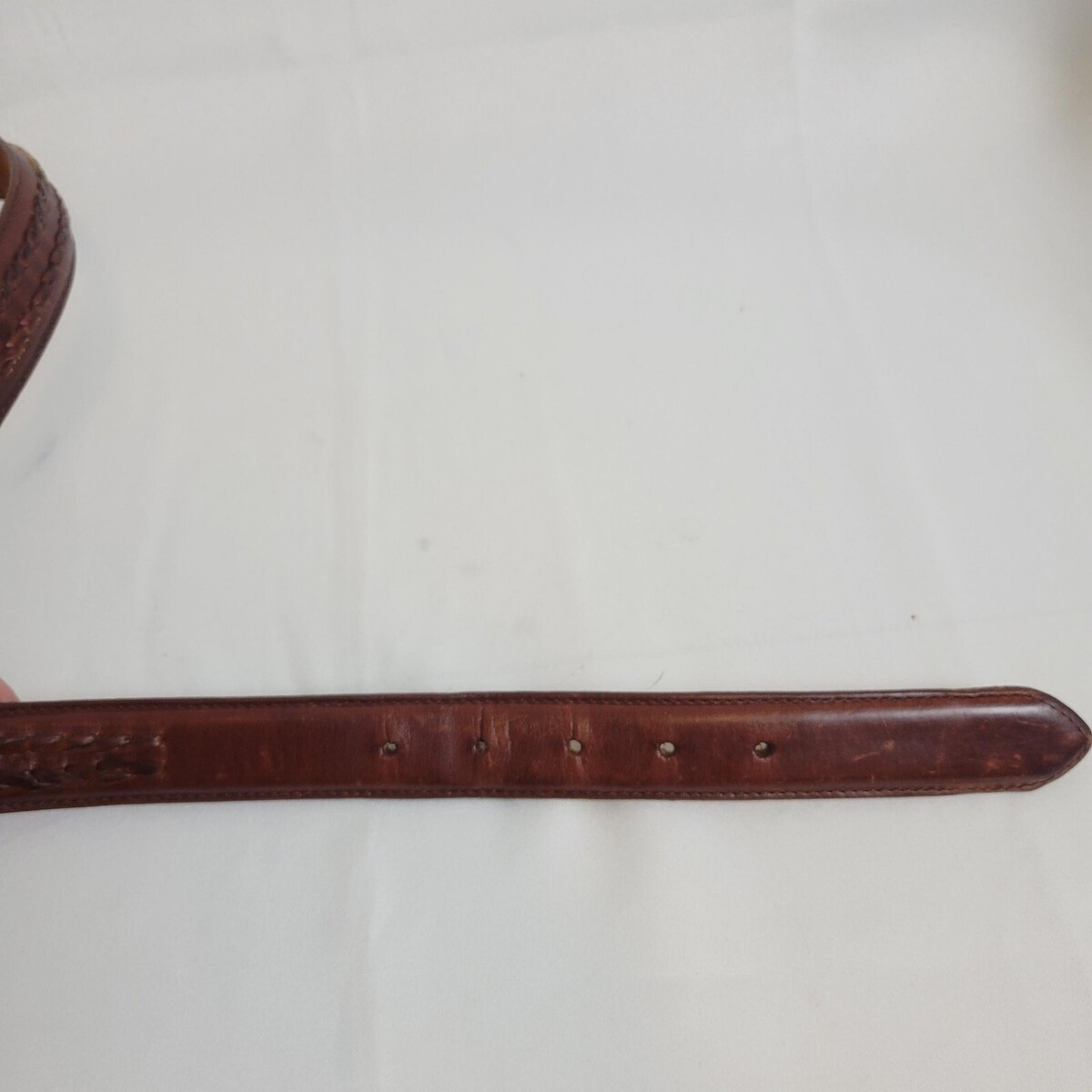 - John Henry Oil Tanned Cowhide Belt Brown Sz 40 Uruguay Braided Detail Brass Buc