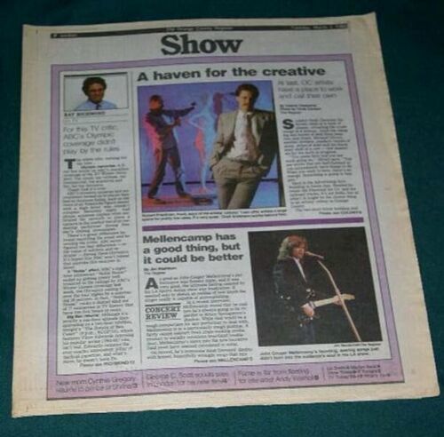 This is the March 1, 1988 issue of "Show" newspaper supplement. Cover concert review on John Mellencamp. A terrific item for the fan or collector.