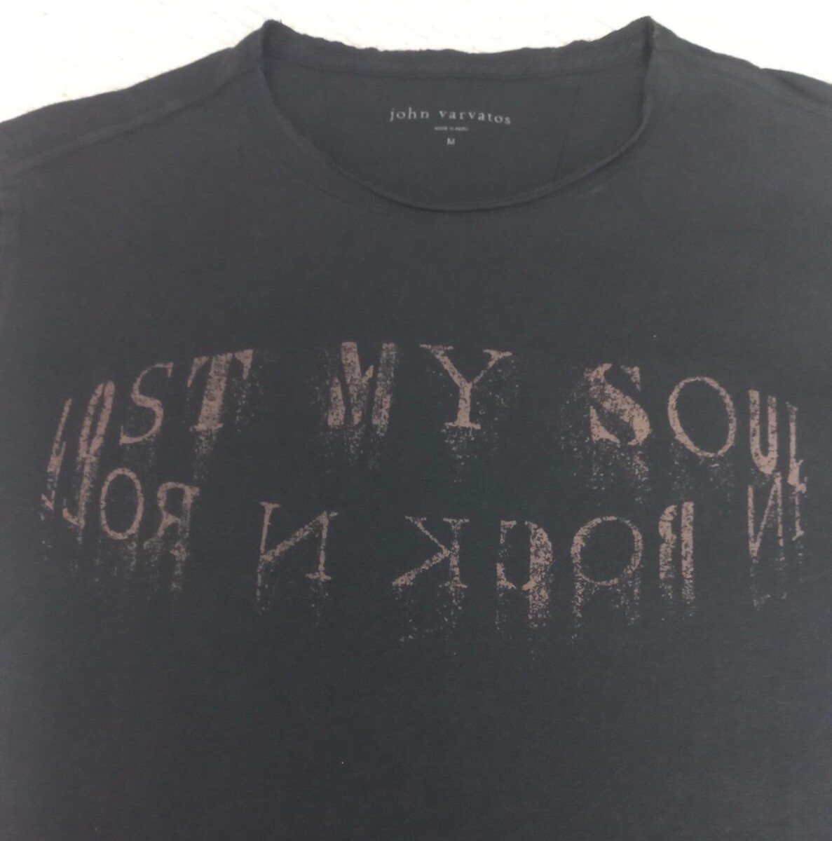John Varvatos Black Lost My Soul.... Raw Edge 100% Cotton Graphic Tee Shirt Sz M
