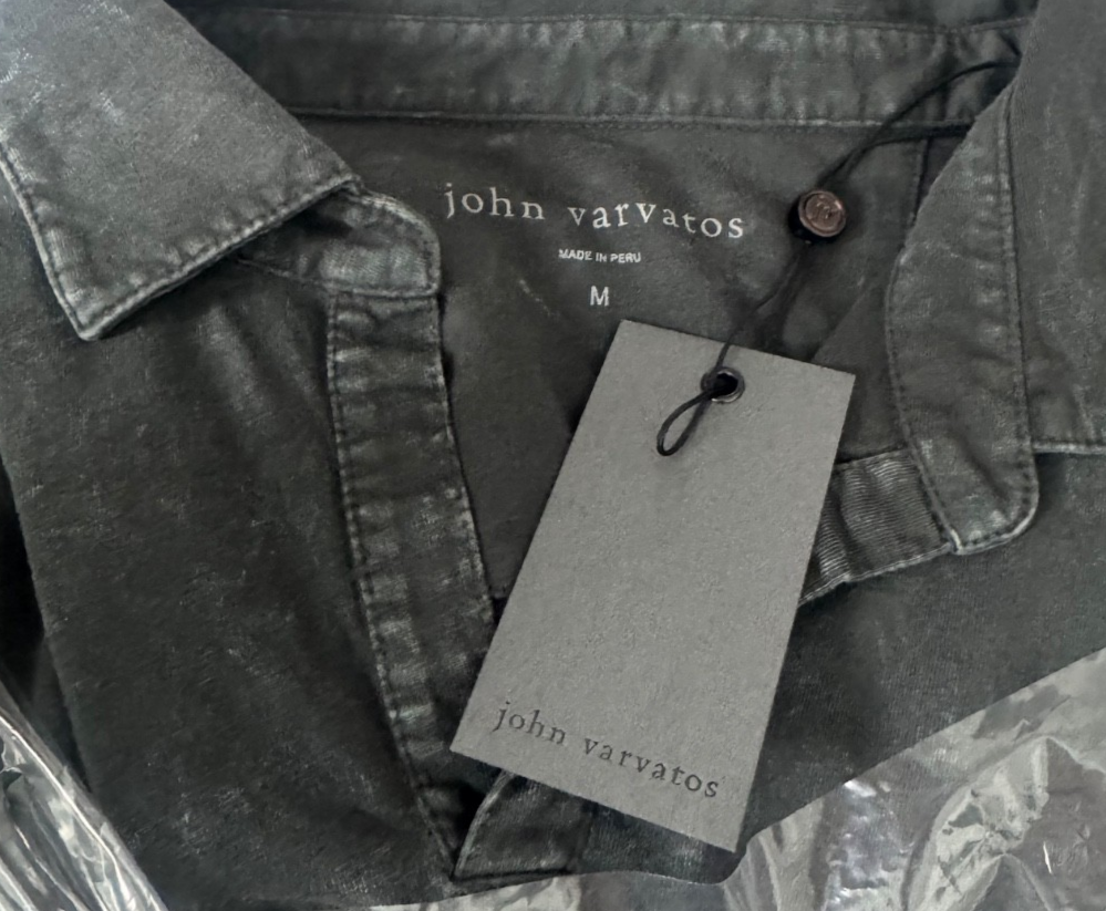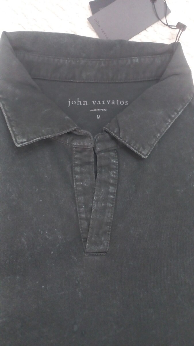 - John Varvatos Men's Short Sleeve Open Collar Polo Shirt Marbel Wash Look Size M