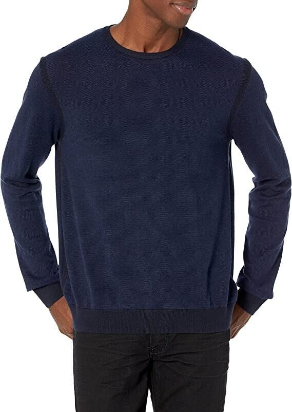 - John Varvatos Star USA Birdseye Cotton/Cashmere Crewneck Sweater in Navy-Small