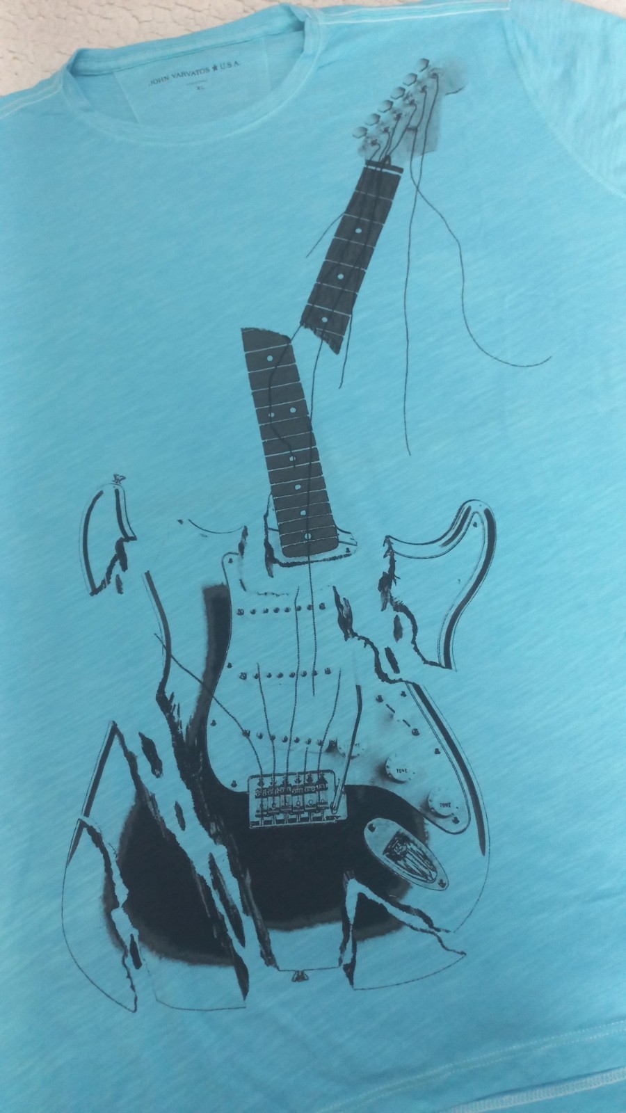 - John Varvatos Star USA Men's Stone Wash Light Blue Broken Guitar T-Shirt XL