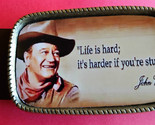 JOHN WAYNE Photo Epoxy Belt Buckle " Life is hard: it's harder if you're stupid"
