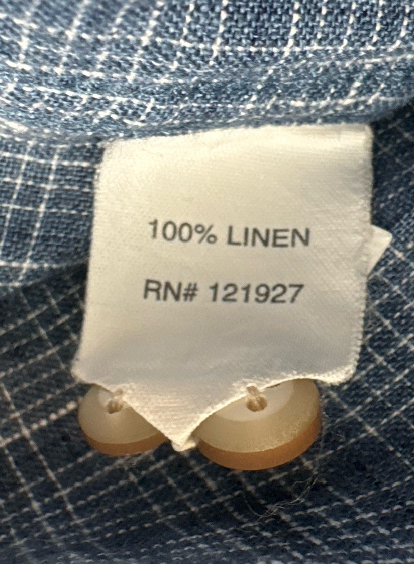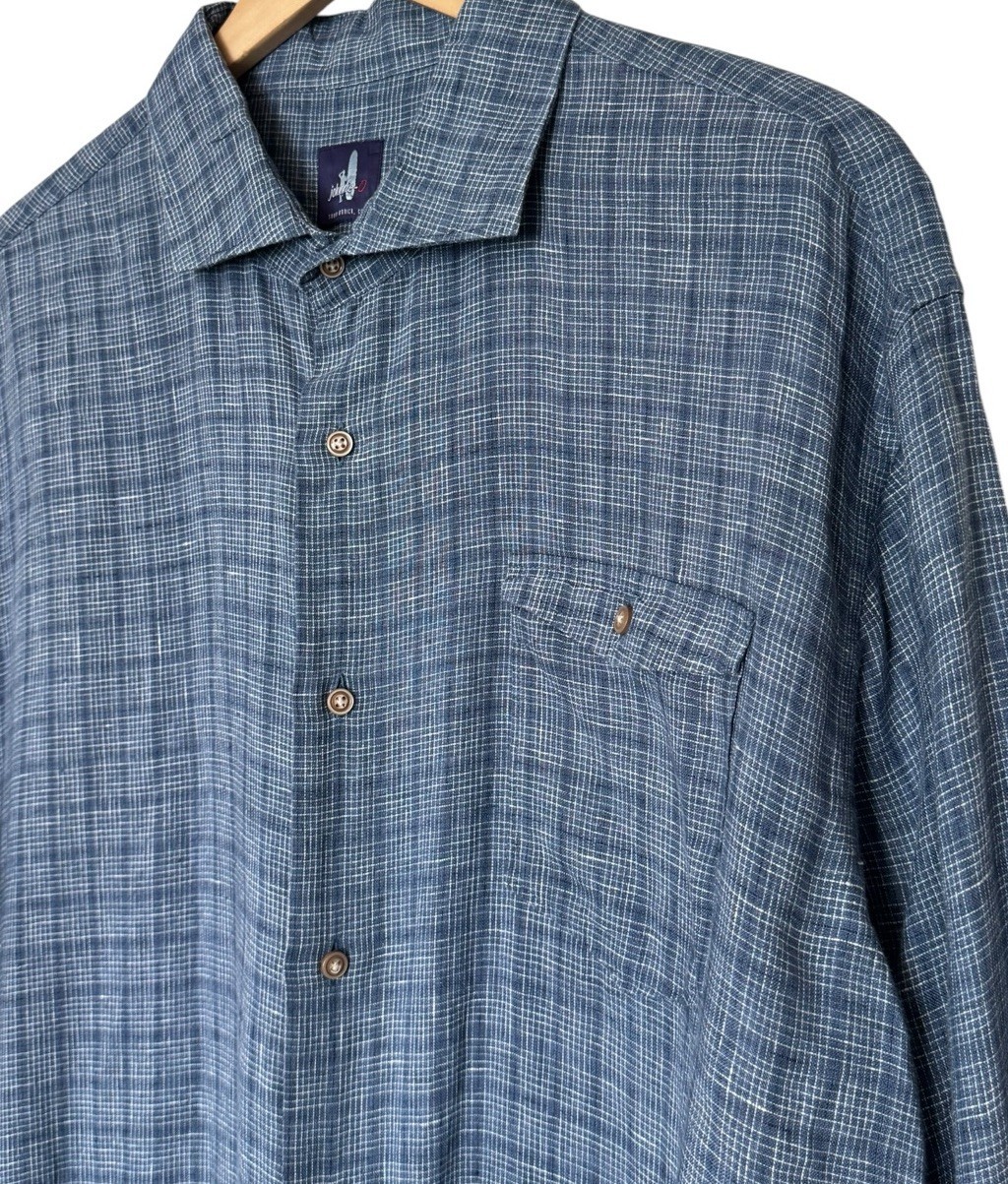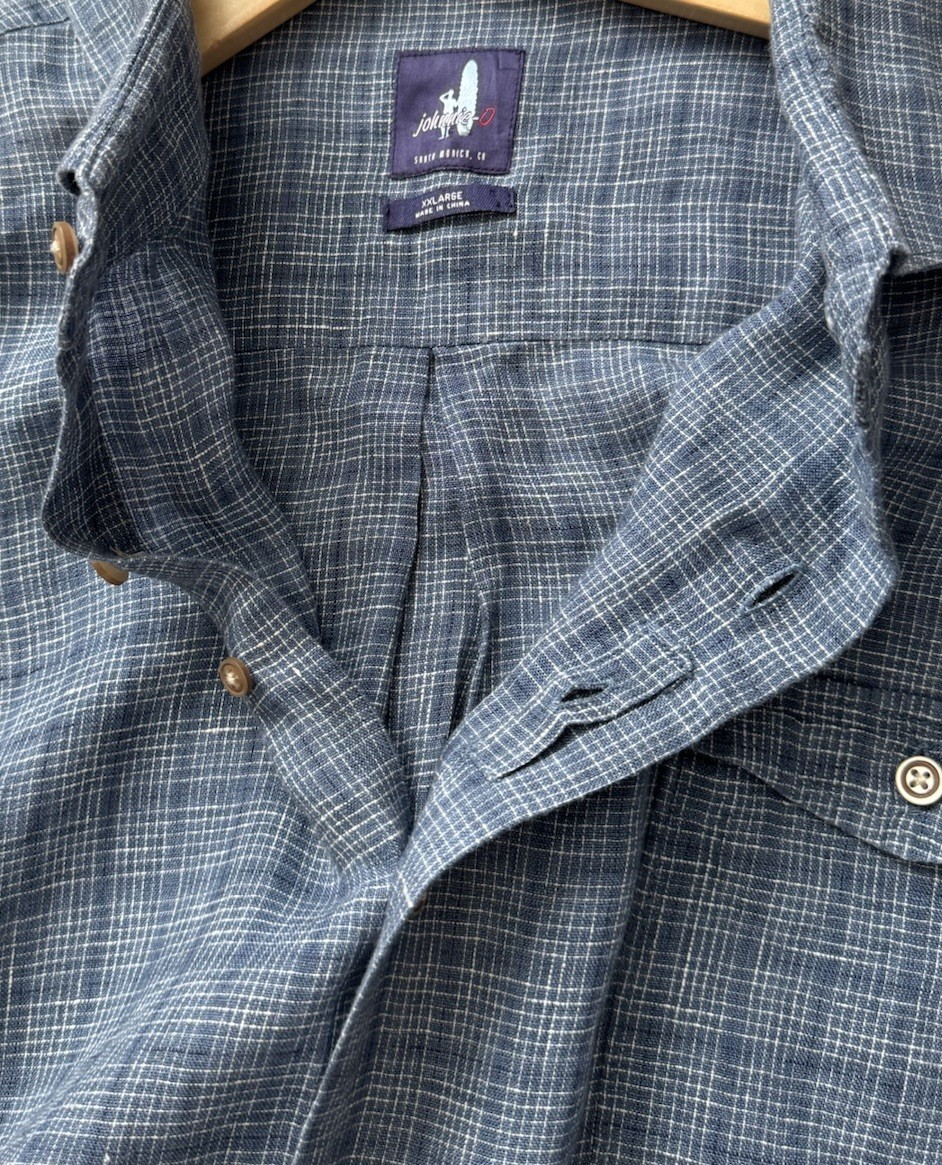 - Johnnie-O Shirt Mens XXL Blue Linen Button Long Sleeve Coastal Casual 2XL Plaid