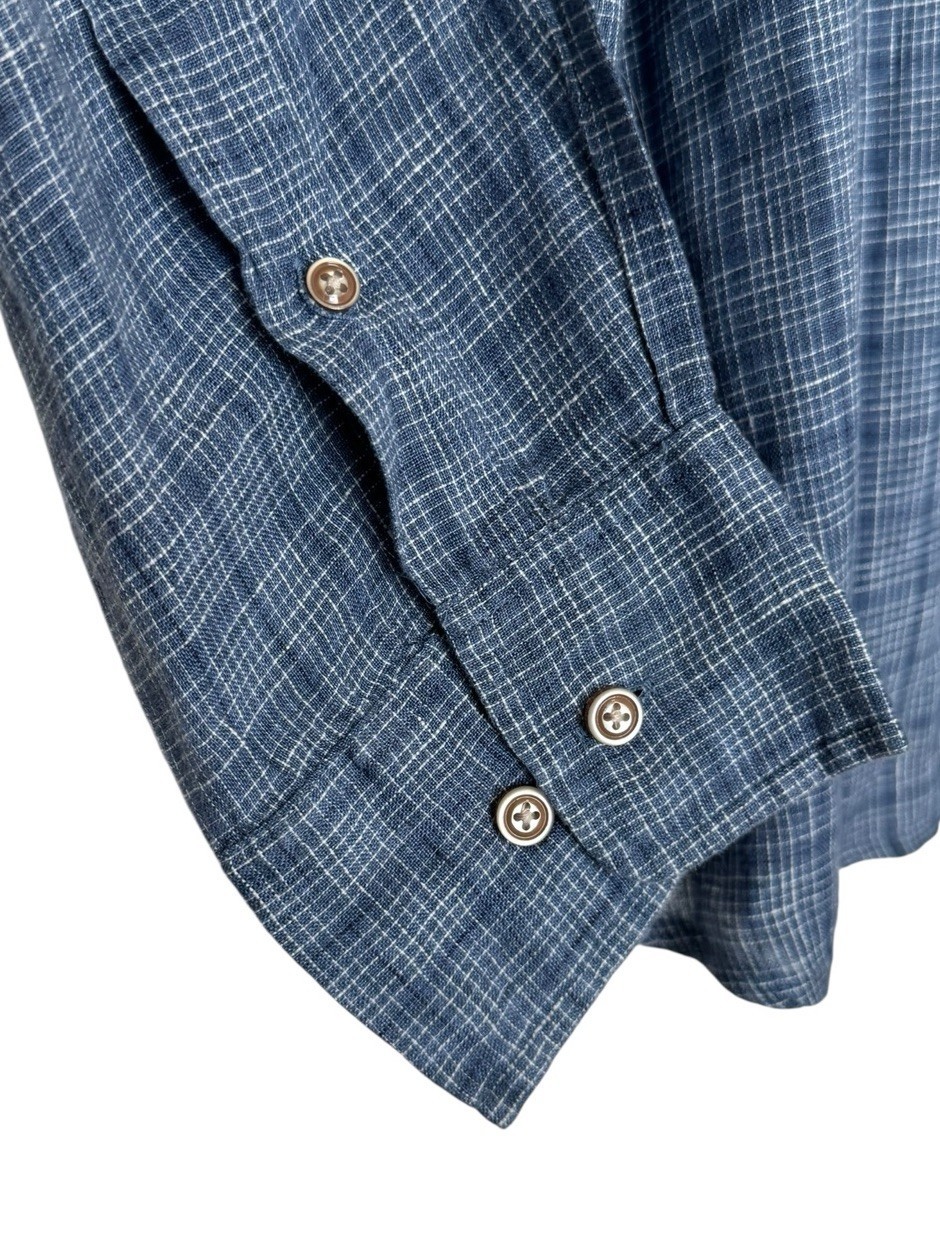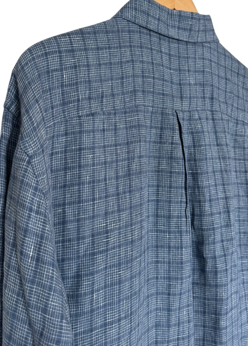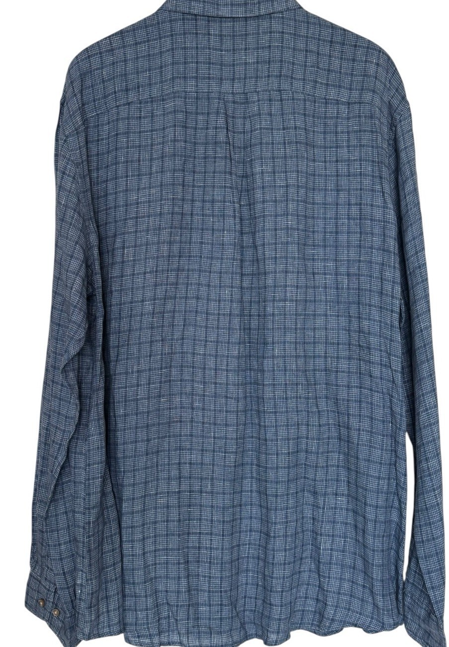 - Johnnie-O Shirt Mens XXL Blue Linen Button Long Sleeve Coastal Casual 2XL Plaid