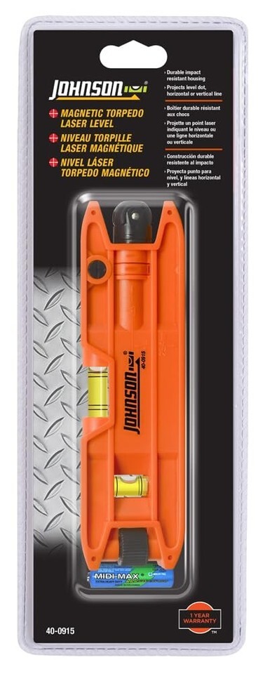 - Johnson Level & Tool 40-0915 Magnetic Torpedo Laser Level, 2" x 6", Orange, 1 L