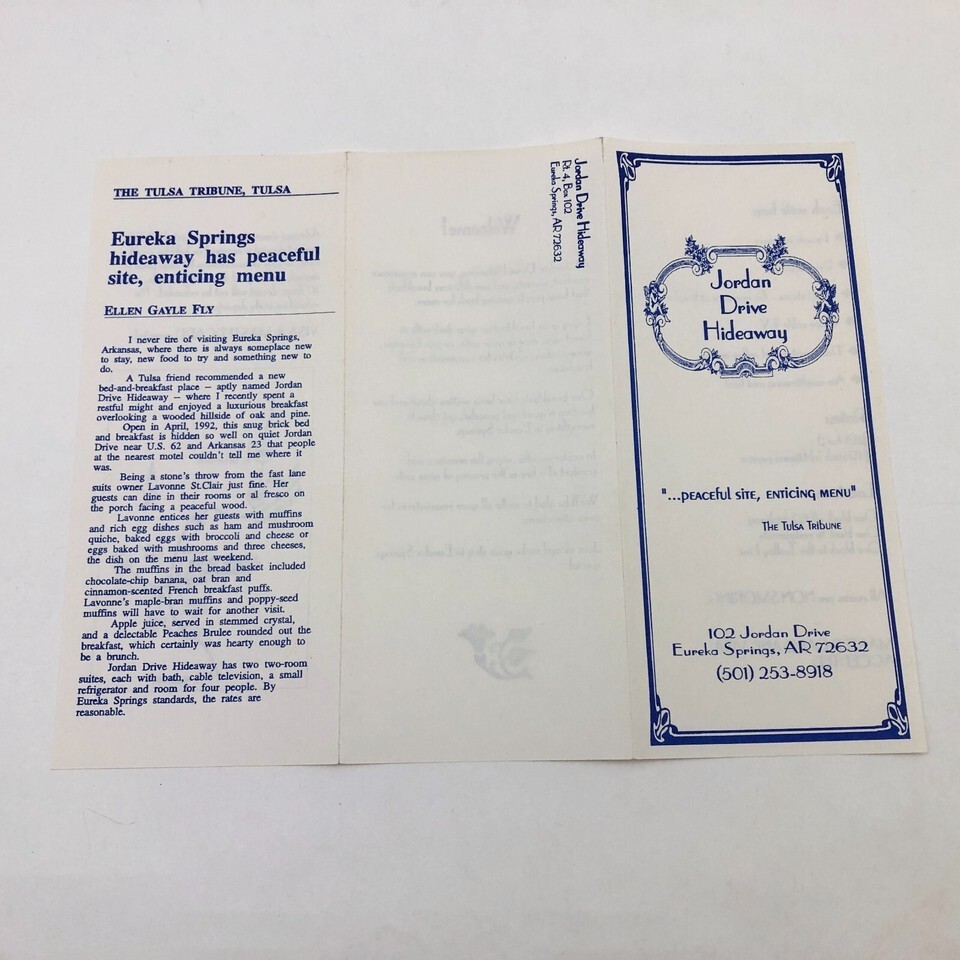 - Jordan Drive Hideaway Bed & Breakfast Brochure Eureka Springs Arkansas 1990's
