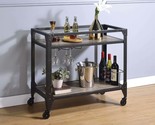 Features: Serving Cart, Storage: Open Compartment, Wine Bottle Steamware Rack, Wooden Top Shelf: Rustic Oak Finish, Metal Frame: Charcoal Finish, Caster Wheels Set Includes: One (1) Serving Cart
