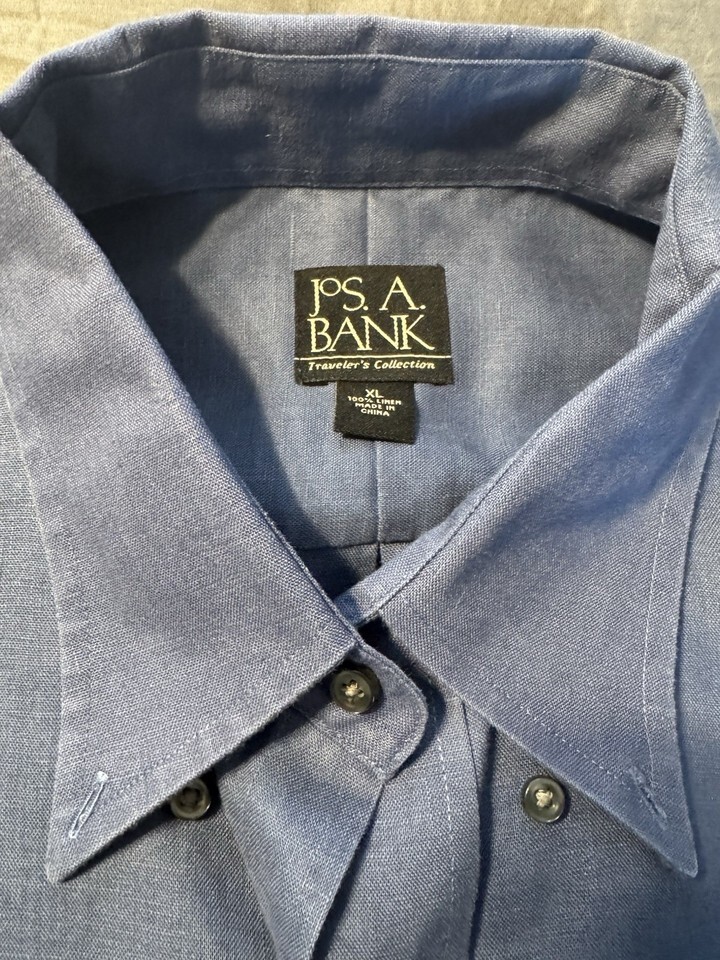 - Jos A Bank Travelers Collection 100% Linen Shirt XL Blue Long Sleeve