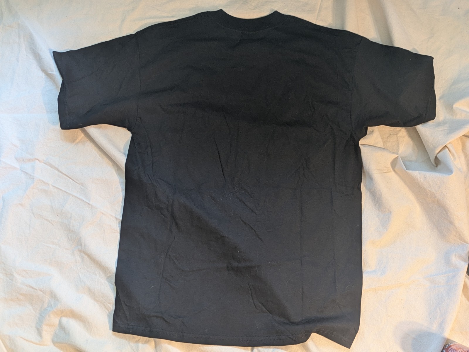 The product is a vintage Jose Carreras singing from the soul black shirt with gold accents, featuring a solid color and short sleeves. Made from a cotton blend material, the shirt is machine washable and has a crew neckline. It is a regular fit, size large, and suitable for men who appreciate opera music. The shirt is from the Screen Stars brand and follows the Gildan Ultra Cotton model, perfect for fans of Jose Carreras looking to add a unique and stylish piece to their wardrobe. Measurements: Armpit to Armpit - 22 in Should to Hem - 29 In