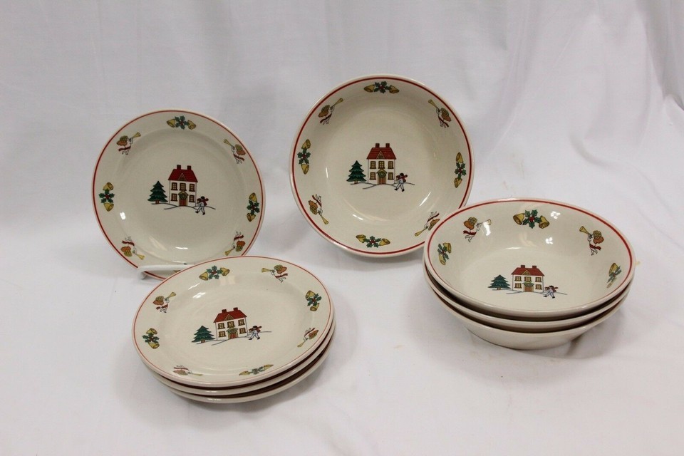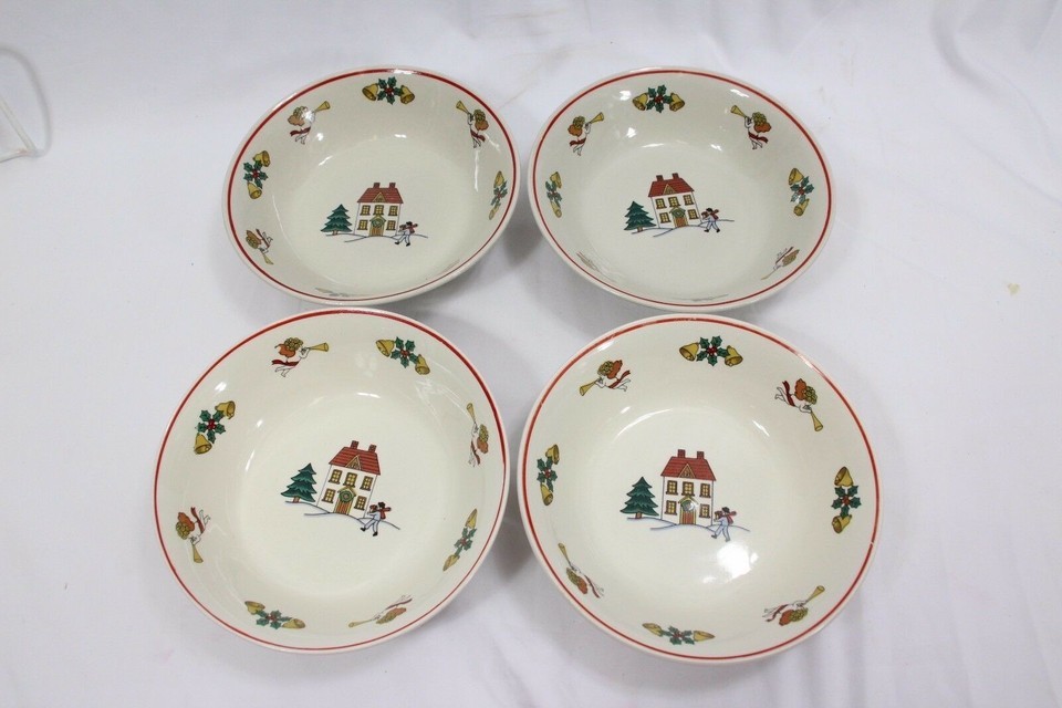 - Joy of Christmas 4 Bread Plates + 4 Bowls Lot of 8 Xmas