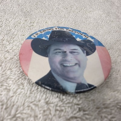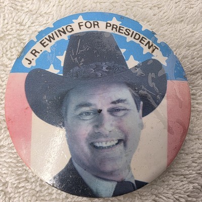 - JR EWING For President Button Pinback Larry Hagman TV Show DALLAS 80s Pin