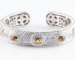 - Judith Ripka Sterling Silver Hinged Cuff Cognac Quartz Bracelet w/ CZ Accents