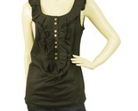 Juicy Couture Black Ruffled Cotton Tank Vest Blouse Top w. Gold Buttons - Size 4