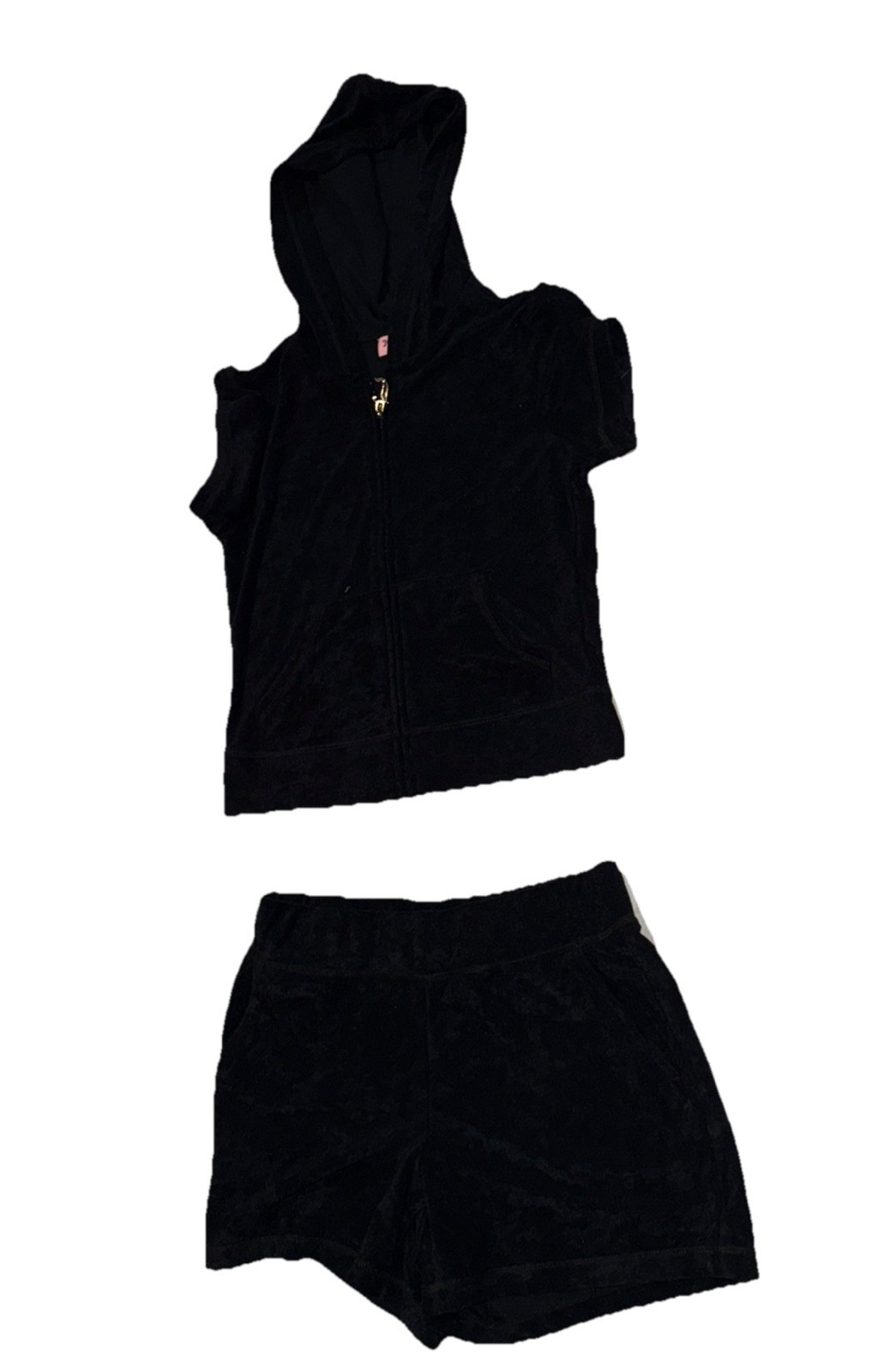 - Juicy Couture Velour Hoodie & Shorts Tracksuit Set BLACK- Size S NEW