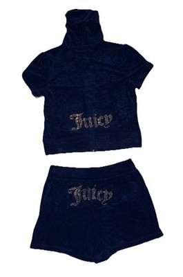 - Juicy Couture Velour Hoodie & Shorts Tracksuit Set NAVY SZ L NEW