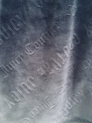 The product is a pair of women's XL black velvet sleep shorts from Juicy Couture with a Y2K vintage style. Made from a blend of polyester and spandex, these pull-on shorts feature an elastic waist for comfort and stretch. The solid black color with the Juicy Couture logo accents adds a touch of designer flair, making them a stylish and cozy addition to any sleepwear collection. Perfect for all seasons, these shorts are easy to care for with a hand wash only requirement, making them a convenient and long-lasting choice for any woman looking for a blend of comfort and style.