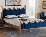 - Julian Royal Blue Velvet Fabric and Walnut Brown Wood Queen Size Platform Bed