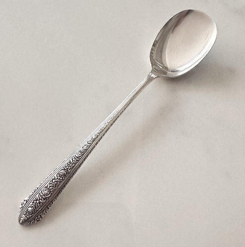 Sterling Silver TEASPOON 5 7/8" in the pattern JULIET BY WALLACE. It is NOT monogrammed and is in excellent condition.