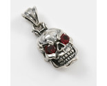 - JUMBO RED EYED SKULL STERLING SILVER PENDANT w/ RED 2 x 6mm CUBIC ZIRCONIA