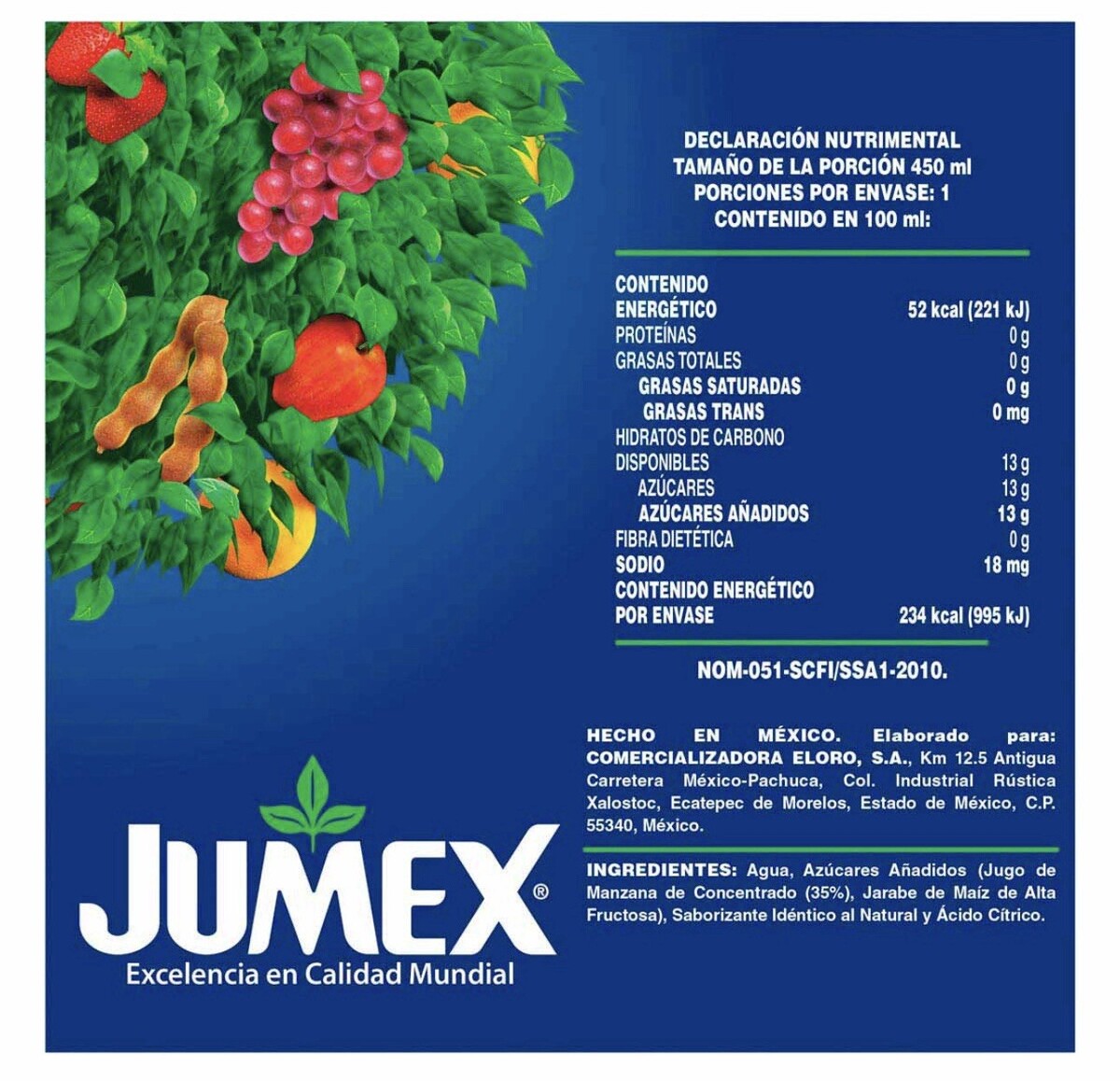 Jumex Manzana natural fruit nectar NO preservatives artificial flavors colors
