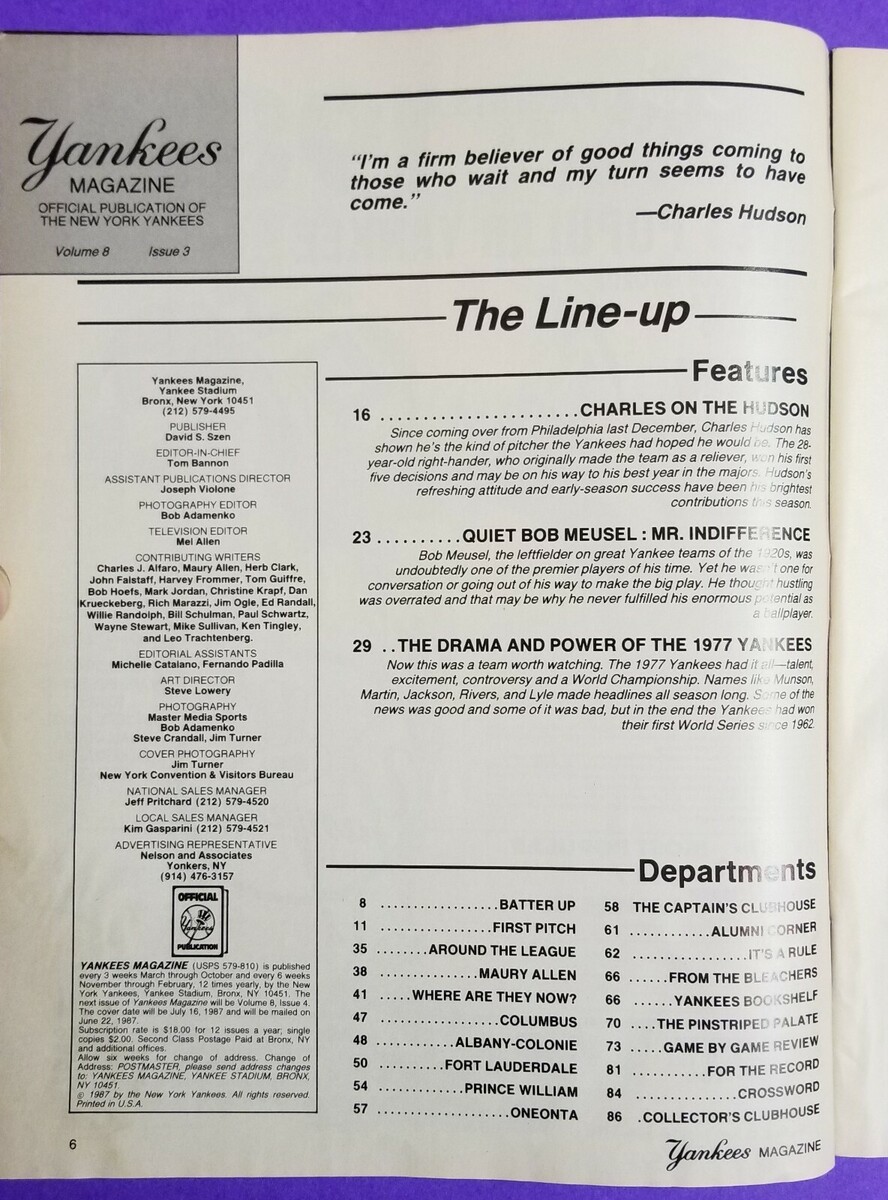 June 25, 1987 New York Yankees Magazine Charles Hudson Dave Winfield Poster