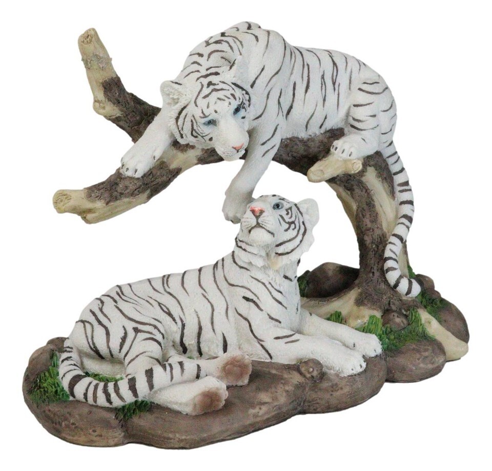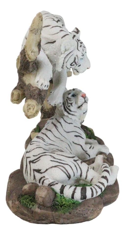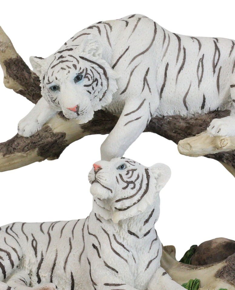 Ebros Jungle Frolic Siberian Bengal White Tiger Couple By Forest Curved Tree Figurine