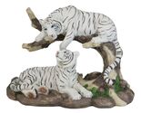 - Jungle Frolic Siberian Bengal White Tiger Couple By Forest Curved Tree Figurine