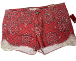 Junior's No Boundaries Cutoff Red Bandana Print Lace Trim Stretch Jean Shorts - Brand New with Tags!