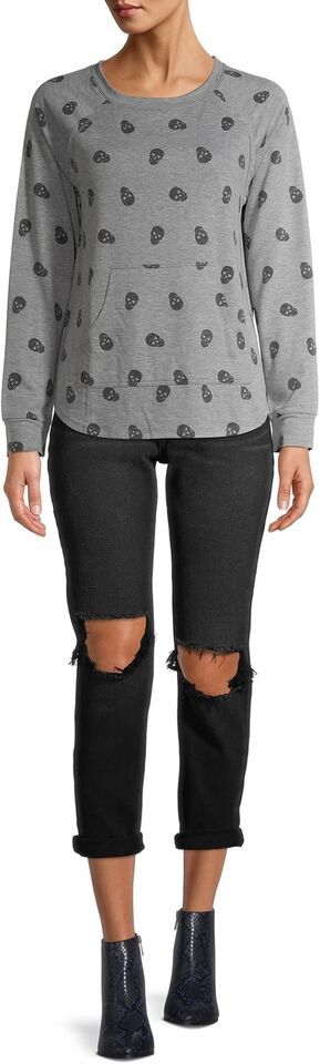 - Juniors Printed Skeleton Head Light Pullover Sweatshirt Size Extra Small (1)