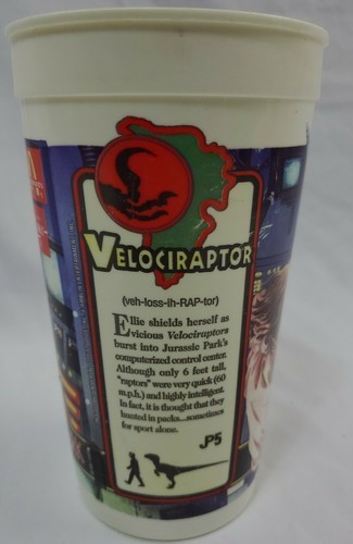 - Jurassic Park McDonald's Dinosaur Collector Cup JP5 Velociraptor Coca Cola 1992