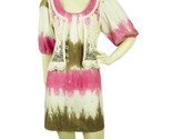 - Jus D' Orange Tie Dye Pink Brown Mini Length Crochet Summer Beach Dress One size