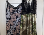 Just Love Black Widow Lace Trim Chemise Set - Black, Pink, and Green Size L. Chic chemise set with lace detailing. Features floral and tropical patterns. Perfect for a stylish night's sleep. The Black Widow is 100% Polyester. The Just Love is 90% Polyester and 10% Spandex. Both are machine washable. Just Love armpit to armpit measures 18?. Shoulder to hem is approximately 33? (straps are adjustable). Black Widow armpit to armpit measures 17.5?. Shoulder to hem is 36?. Very Good Used Condition - See photos for further description.