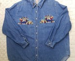 - Just My Size Denim Top Womens Size 18W 20W Fall Embroidered Blue Cotton Shirt