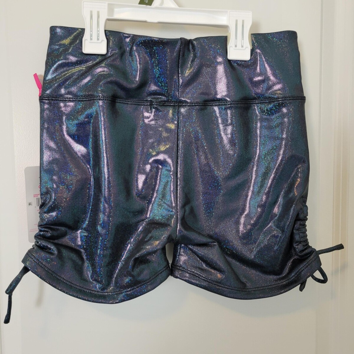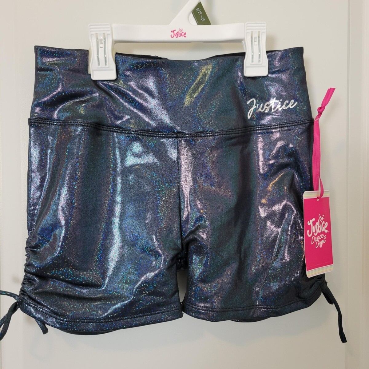 - Justice Active Size XL 16/18 Blue Shimmer Yoga Shorts Rutched NWT Dance Gymnast