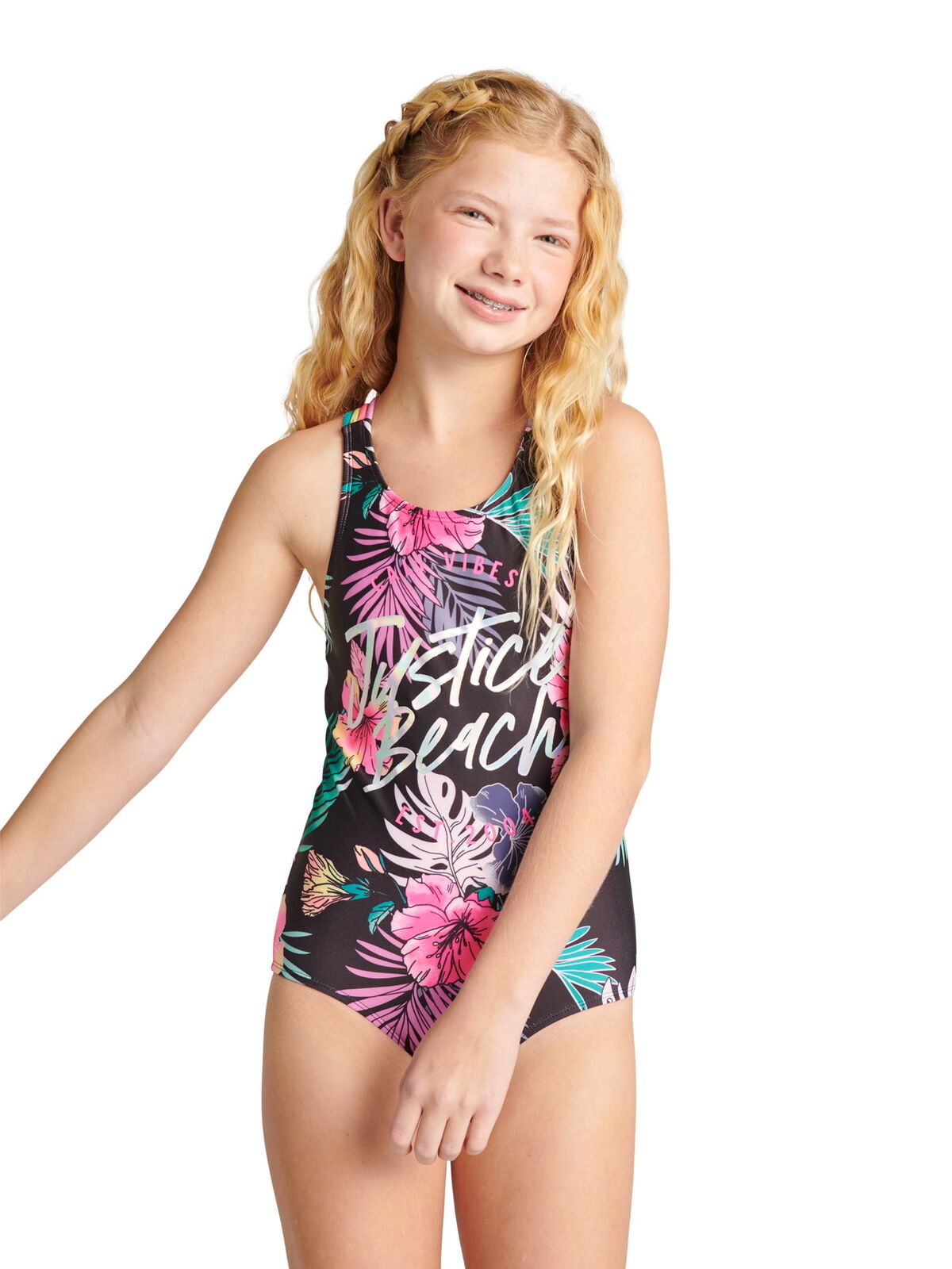 - Justice Girls Multi Straps Graphic Floral Swimsuit One Piece Multicolor M (10)