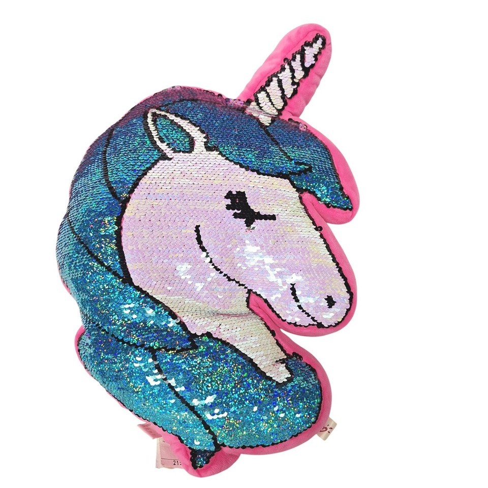 - Justice Sparkly Unicorn Pillow Reversible Sequin Pink Purple Plush Cushion 18"