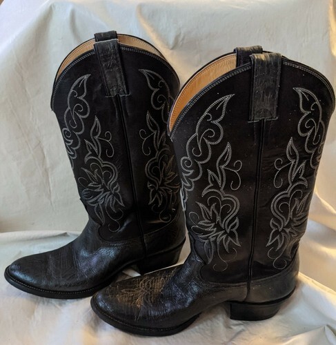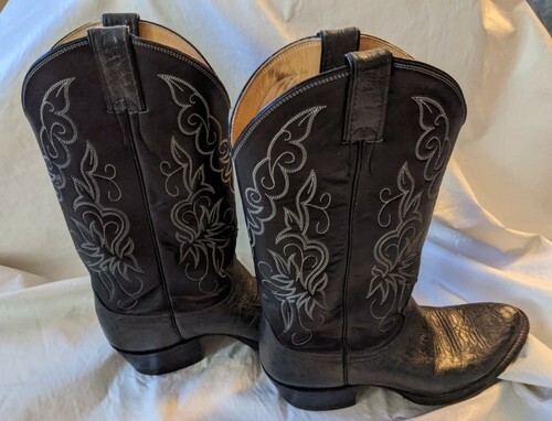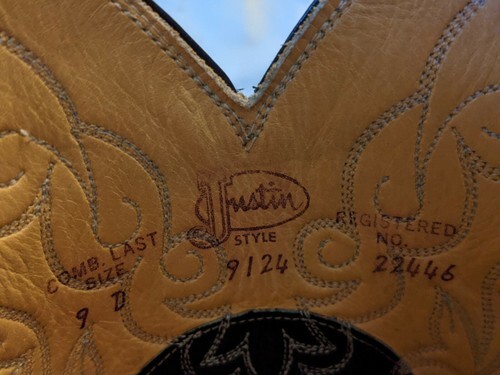 A vendre est une botte western classique Justin 9124 pour hommes d'occasion et non abusee, noir London Calf 22446 taille 9 D.