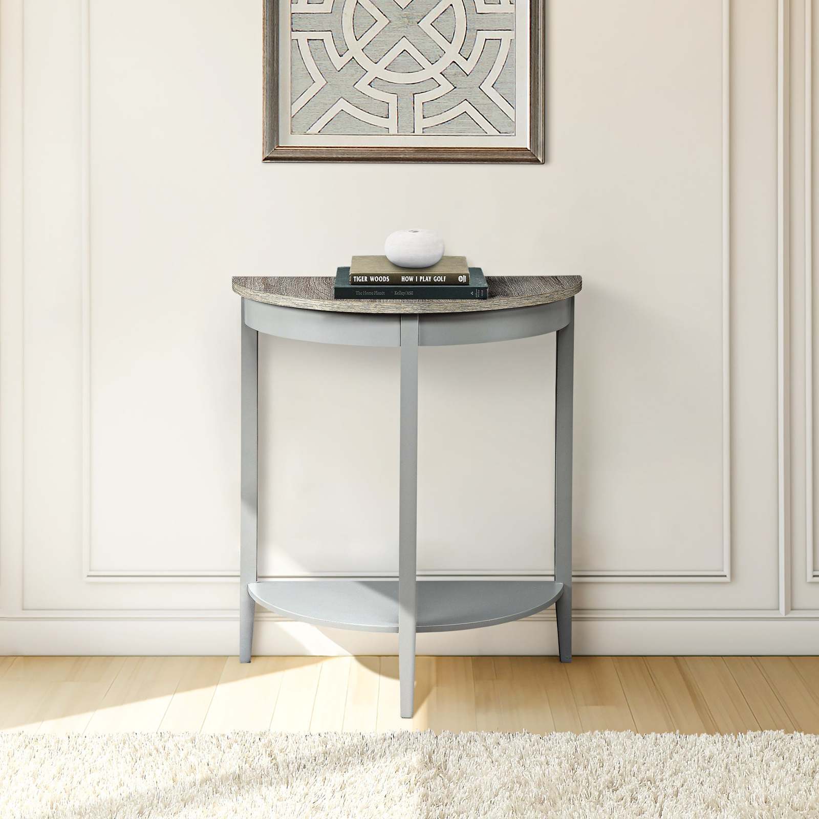 This elegantly designed half-moon console table adds a touch of sophistication and warmth to any entryway or living space.