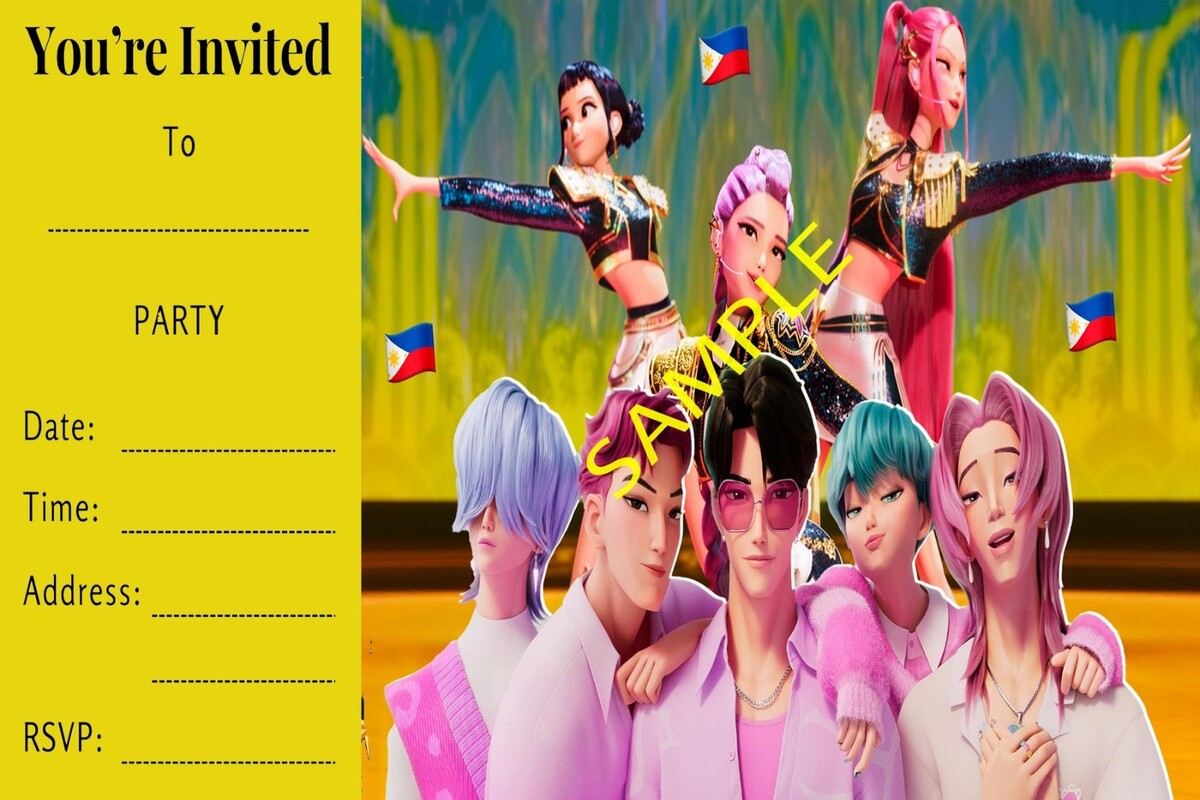 K Pop Demon Hunter Birthday party Invitations 12 with envelopes glossy finish